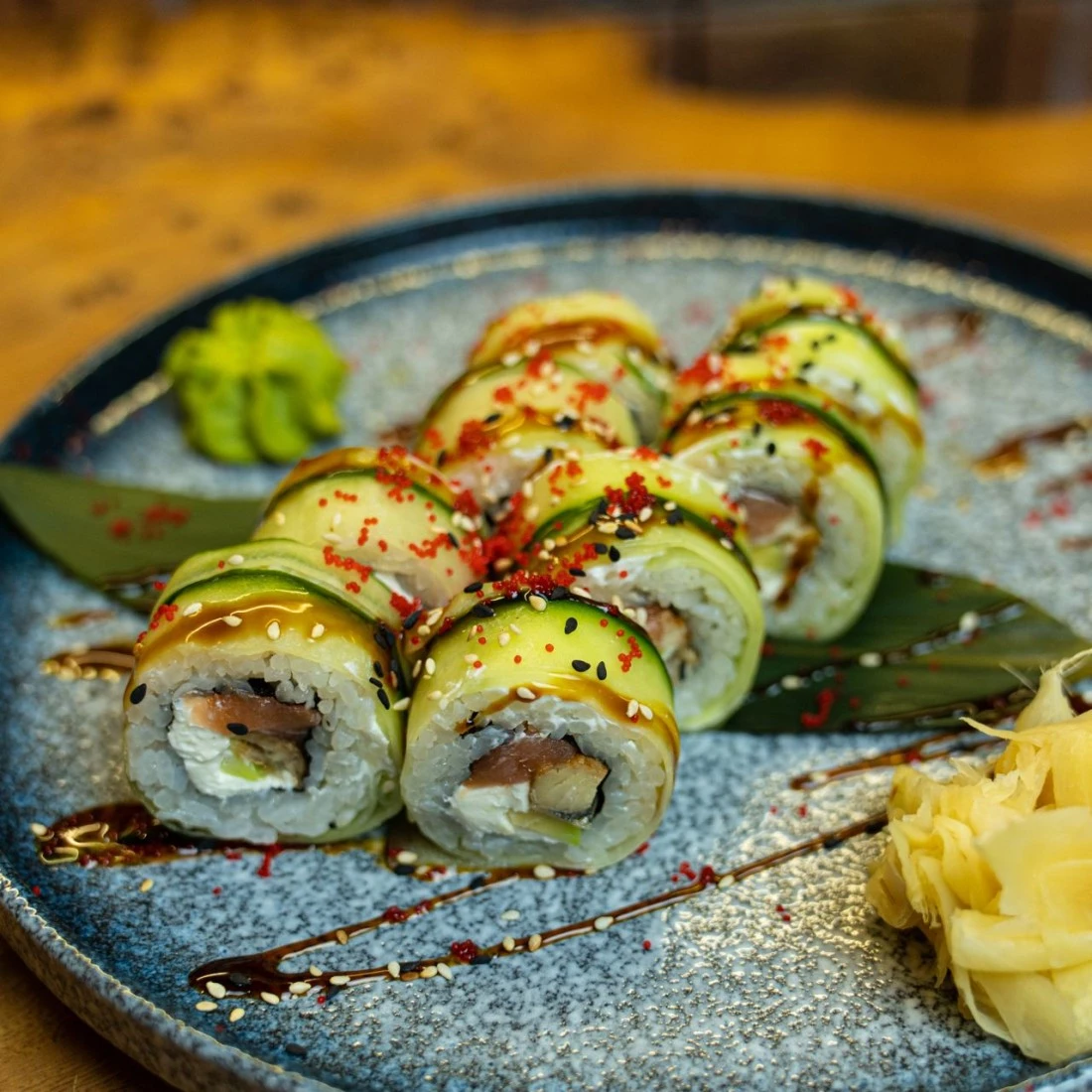 Рис, нори, творожный сыр, авокадо, лосось, угорь, огурец, унаги, масаго, кунжут