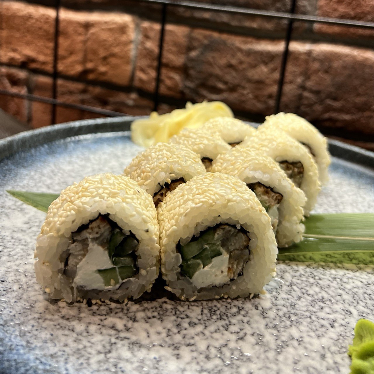 Рис, нори, творожный сыр, огурец, угорь, унаги, кунжут