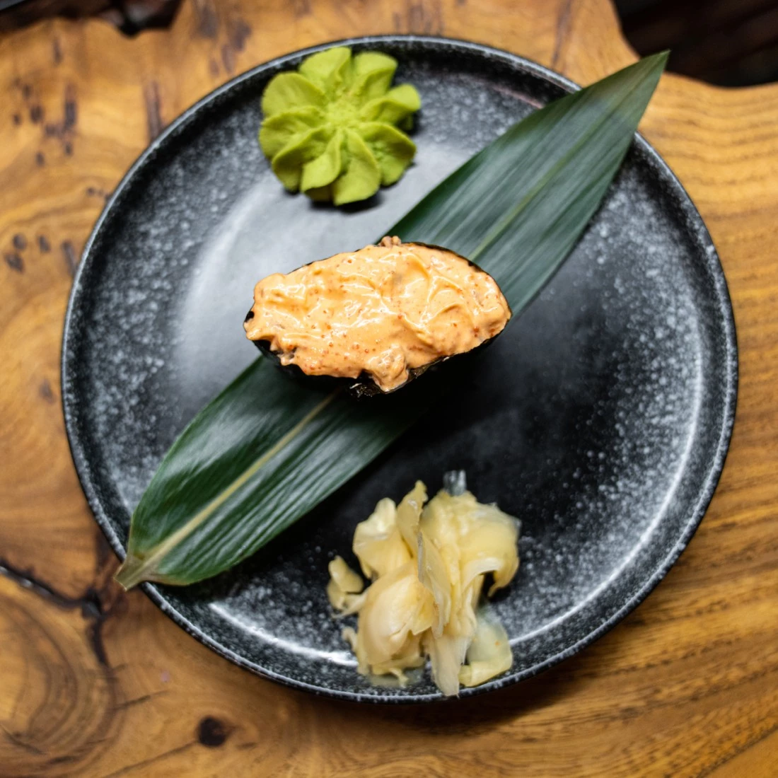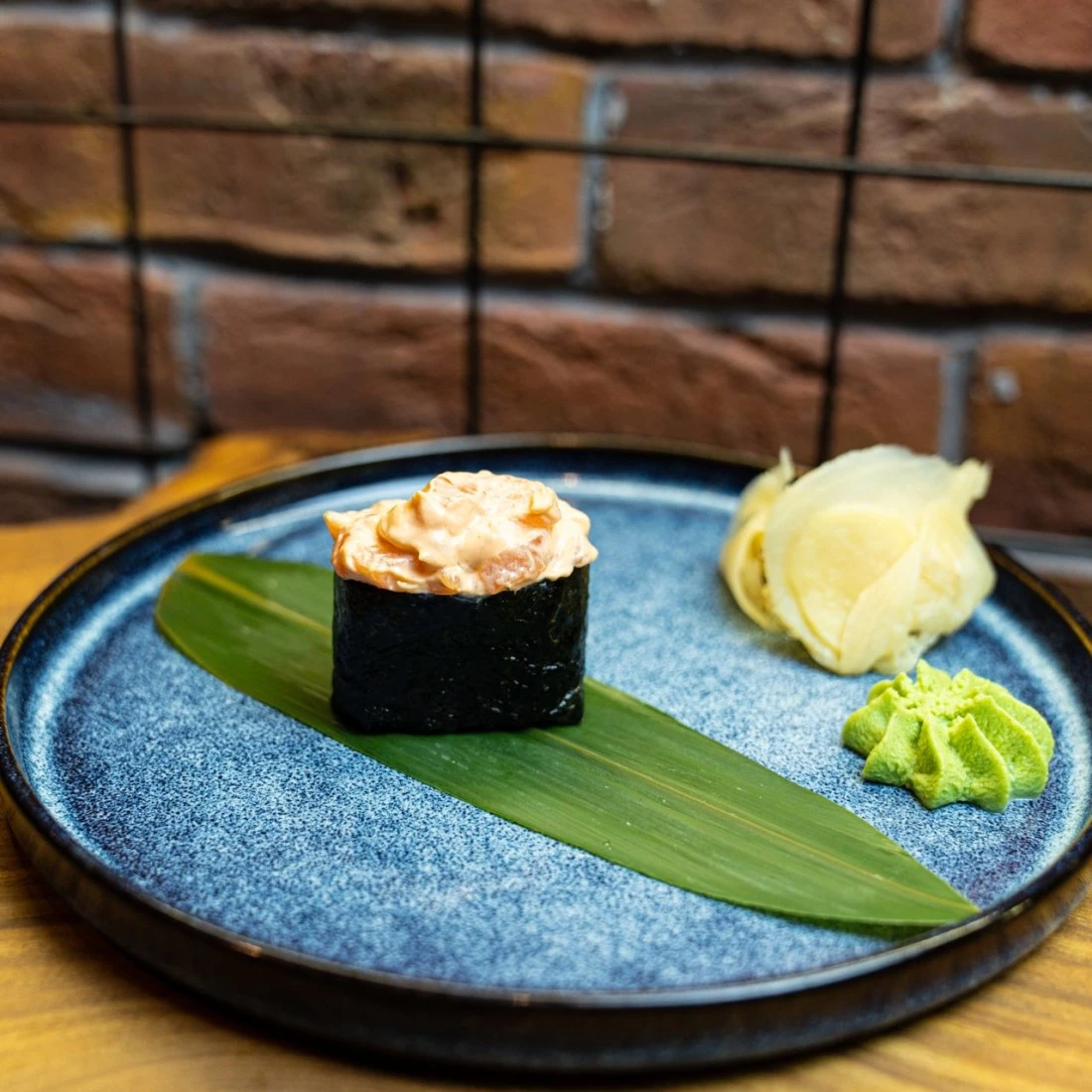 Рис, нори, креветка, спайси соус, унаги, кунжут